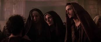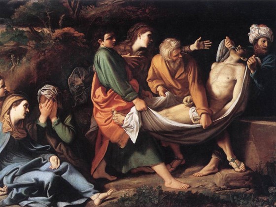 Desde Jerusalén llega corriendo José de Arimatea, un discípulo clandestino de Jesús, al que ya no le importa ser reconocido, como tal, abiertamente, pues abandonó el Sanedrín, para no tomar parte en el inicuo juicio perpetrado contra Jesús, y ya no tiene nada que perder, libre de toda atadura humana, incluidas las de la fama y el qué dirán, pues más se deshonraron ellos, haciendo lo que hicieron. Trae consigo a dos obreros con una escalera larga, a los que ha pagado por descolgar los tres cuerpos y dar sepultura, en la fosa común, a los dos malhechores, pues, posiblemente, nadie más lo hiciera. Lleva en la mano el permiso del gobernador Poncio Pilato para descolgar y enterrar el cuerpo de Jesús, pero ya no hay ningún soldado romano allí para entregárselo. Ha comprado, también, un lienzo de lino para envolver su cuerpo y una mixtura de mirra para embalsamarlo, y le ofrece a María la posibilidad de enterrar a Jesús en su tumba, una tumba nueva, hecha para él y su familia, en un bonito jardín, no lejos de allí; para él sería un honor inmerecido y para Ella, una preocupación menos, ahora que está tan afligida… y María, llena de gratitud por toda aquella hospitalidad, acepta.