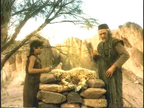 Cuando el niño termina de hacer su altar, pone encima la leña que traía y pregunta: “Padre, tenemos el altar, el fuego y la leña, pero ¿dónde está el cordero para el holocausto?” (cf. Gén.22,7) y el anciano le responde: «Dios proveerá el cordero para el holocausto, hijo mío» (Gén.22,8). Después, en silencio, con gesto serio y conteniendo el llanto, el anciano, ata a aquel niño y lo pone sobre la leña, disponiéndose a degollarlo, como ofrenda para algún dios,… pero ¿por qué tienen que venir a hacer lo que está prohibido, justo debajo de mí?… No puedo entender por qué veo estas escenas precisamente ahora… No sé si son reales o si estoy delirando a causa de la fiebre… ¡Ni siquiera puedo ver a mi Madre a los pies de mi cruz!… Estoy completamente solo y únicamente se me permite ver aquello… Debo estar delirando,… sí, pues mis ojos hinchados apenas se pueden abrir.